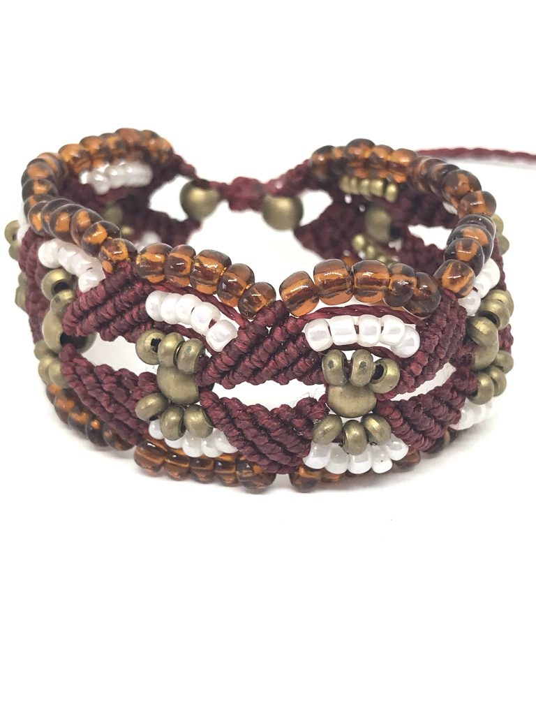 Esta pulsera está completamente de puro macramé (técnica de nudos) su diseños es único , acompañado con la piedra rubí completamente original, lleva nudo corredero y se ajusta a cualquier persona